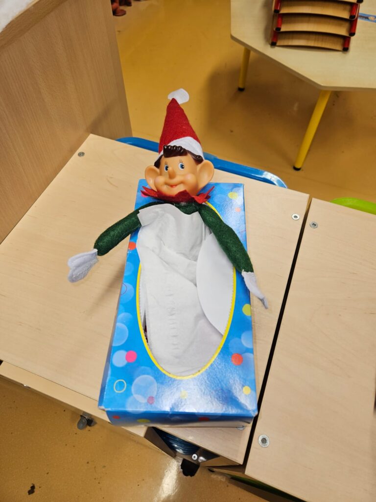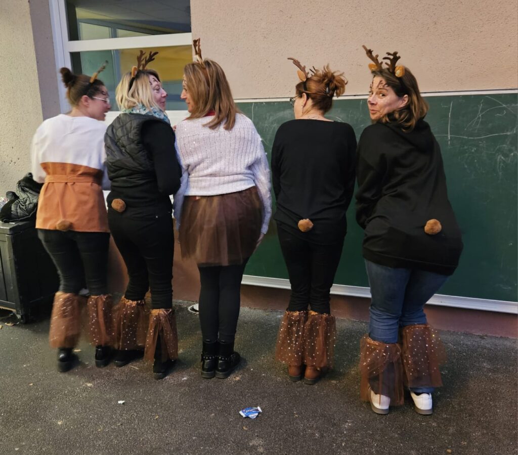 Depuis le début de l’Avent, les lutins farceurs de la classe de MS/GS rivalisent d’imagination : bêtises en série, tours malicieux et fous rires garantis ! Et le pire, c’est que les maîtresses s’y sont mises aussi lors du repas de Noël! Cette dernière semaine avant les vacances, tout le monde a relevé les défis festifs : venir en rouge et vert, briller de mille paillettes et exhiber fièrement son pull de Noël. Résultat : une classe heureuse, des maîtresses complices… et des souvenirs (et paillettes) plein les cheveux !