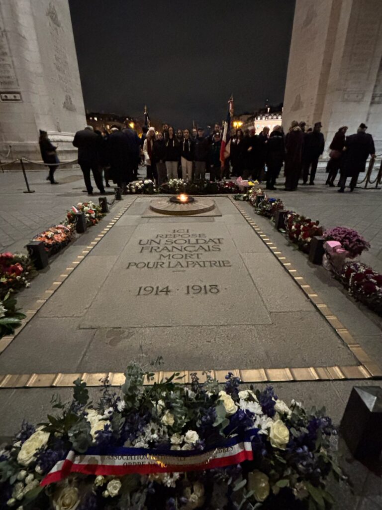 Quelques élèves de la classe Défense du collège entourés de leurs professeurs ont eu l’honneur de participer au ravivage de la flamme du soldat inconnu sous l’arc de Triomphe à Paris.