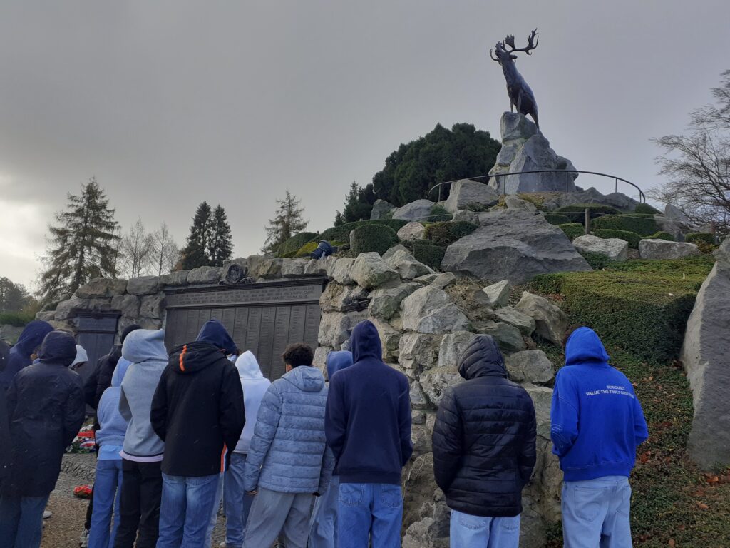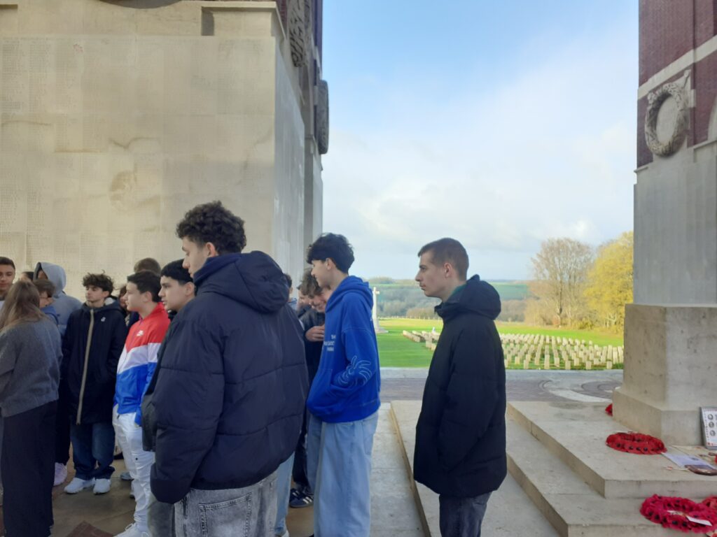 L’après-midi s’est poursuivi sur le circuit du Souvenir, avec plusieurs haltes sur des sites emblématiques de la bataille. Au Lochnagar Crater, immense cratère laissé par une explosion de mine britannique, les élèves ont pris la mesure de la puissance destructrice des armes utilisées. Aux mémoriaux de Thiepval et de Beaumont-Hamel, ils ont observé les milliers de noms gravés et les vastes nécropoles, symboles des pertes humaines subies par les troupes britanniques, du Commonwealth et terre-neuviennes.