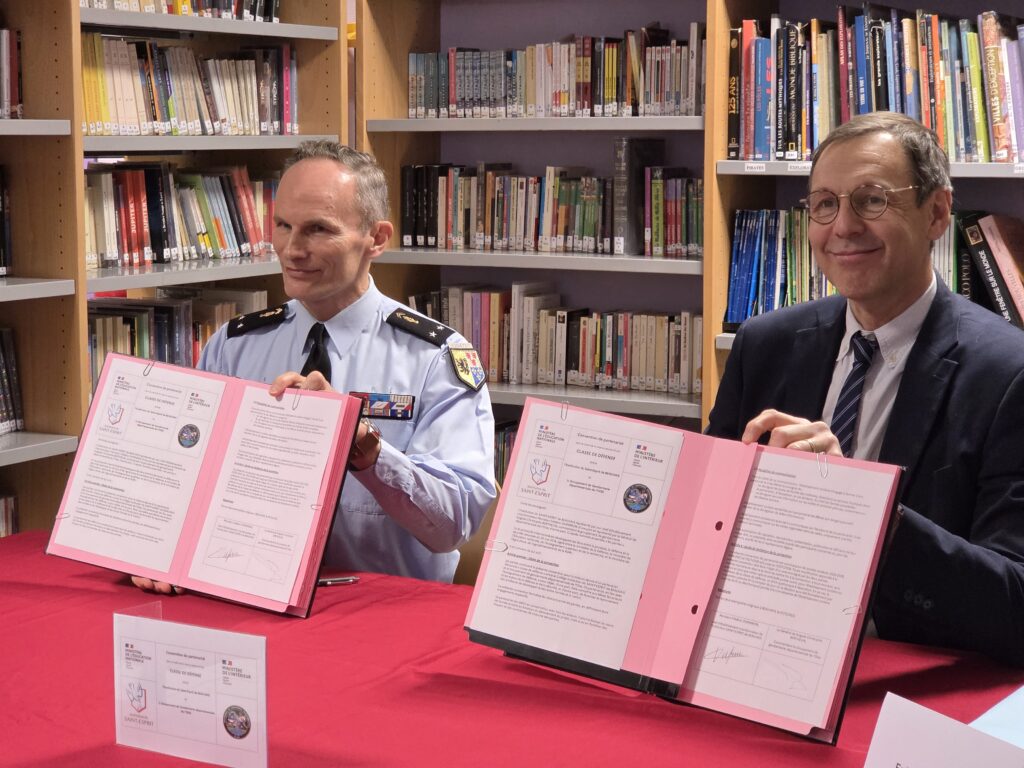 Cet engagement a ensuite été scellé par le Général BERTHELIN, Commandant le Groupement de Gendarmerie Départementale de l’Oise, et Monsieur Frédéric DUPERRON, Chef d’établissement coordonnateur de l’Institution. Ce partenariat vient renforcer le lien entre le monde éducatif et les institutions républicaines, autour de valeurs communes : citoyenneté, engagement et responsabilité.