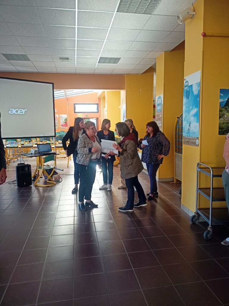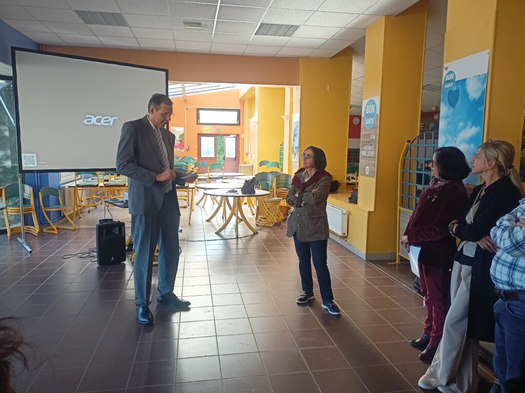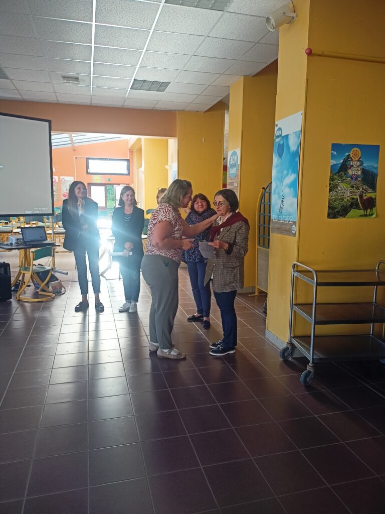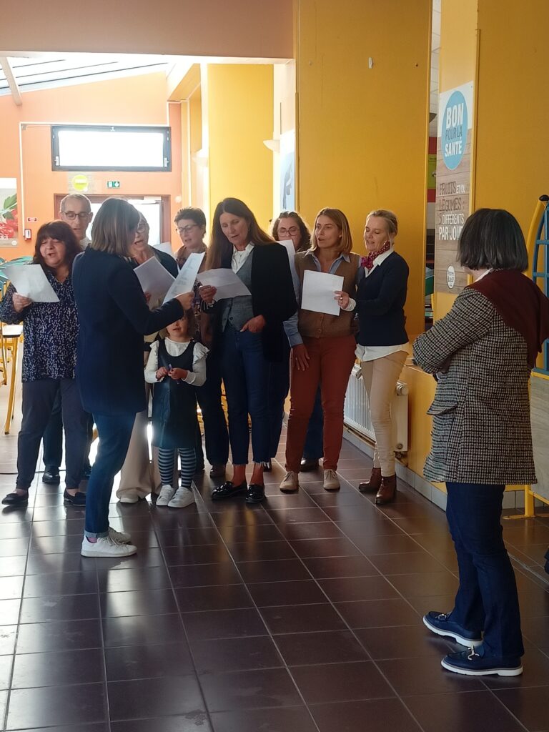 Notre directeur Frédéric DUPERRON a rappelé la richesse de son engagement et de son parcours , tandis que le CSE et ses collègues lui ont adressé de jolis cadeaux. Cristina DELAHAIS, amie de longue date, a partagé un discours personnel et émouvant, avant que la chorale des adultes Grain d’Phonie n’offre un moment musical empreint d’humour et de délicatesse. Enfin, le diaporama réalisé par Caroline VUILLERME a retracé avec tendresse les grandes étapes de ce parcours : les voyages, les projets, les souvenirs de classe, et surtout les élèves au cœur de sa mission.